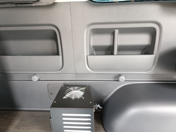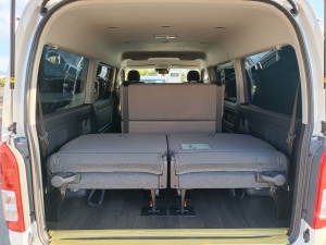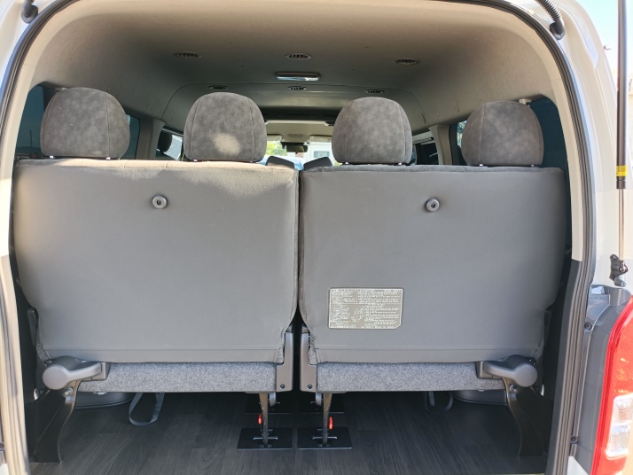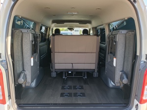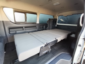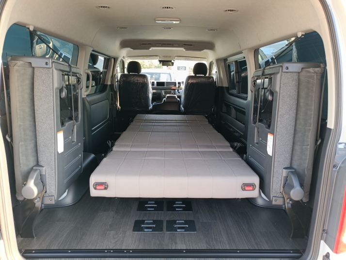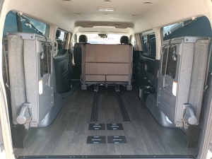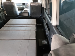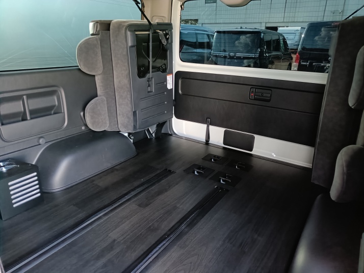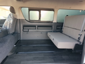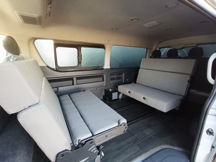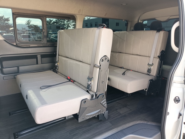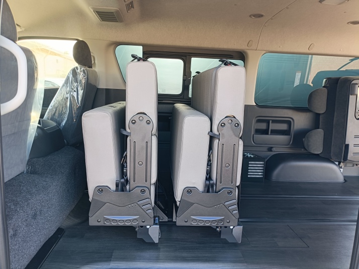 Memo:セカンド席&サード席i-seat REVO バタフライタイプ B型 1000mm幅ロータイプ 2脚搭載。フロア施工。リアヒーターコンバートキット使用。